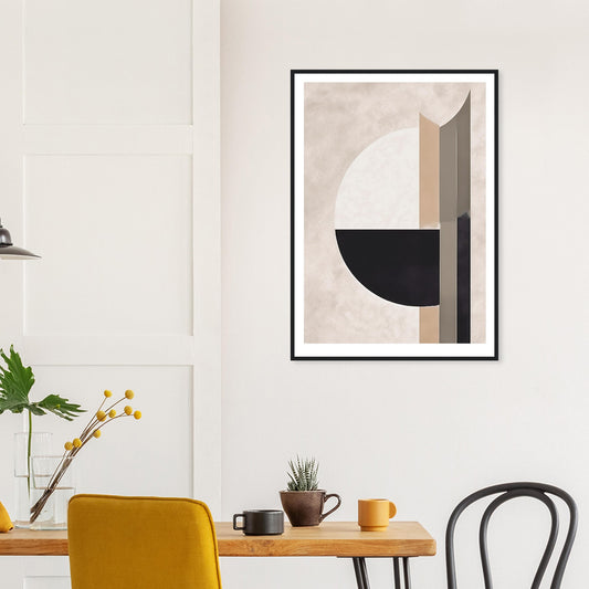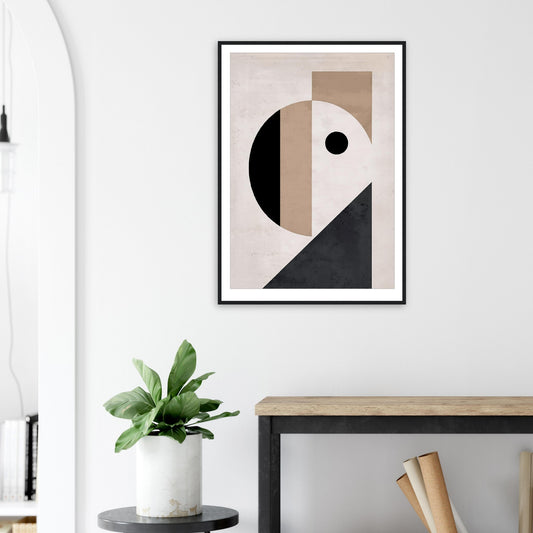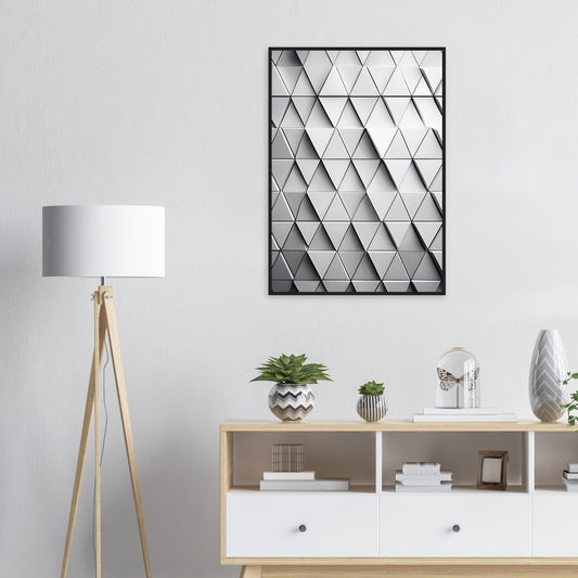 Elegant Black & White Abstract Geometric Wall Art - Mounted Framed Poster