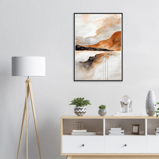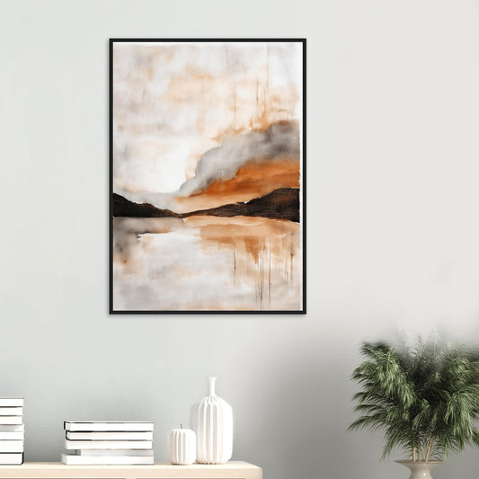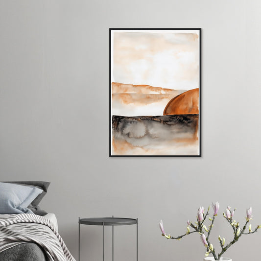 Modern Watercolour Abstract Landscape Framed Poster – Brown & Cream Decor