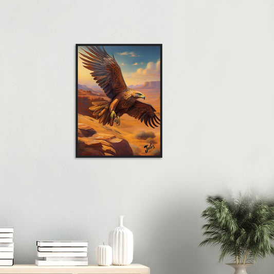 Mounted Framed Print of Spectacular Eagle Soaring Over Rocky Mountains