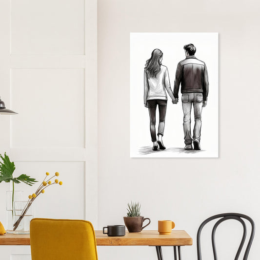 Couple Holding Hands Poster - Unique Black and White Line Drawing Art