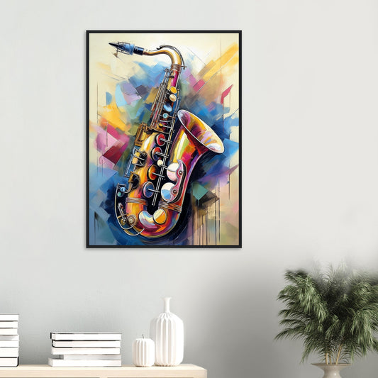 Colourful Sax Mounted Framed Poster – Contemporary Art for Music Lovers