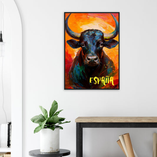 Mounted Framed Poster - España Black Bull Artwork – Colorful Spanish Emblem