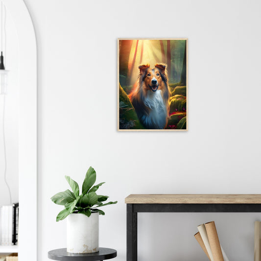Stunning Collie Dog Mounted Framed Poster – Woodland Portrait Art