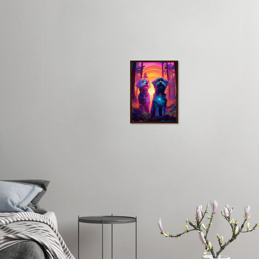 Modern Vibrant Forest Poster of Two Dogs Gazing at the Sky - Premium Matte Print