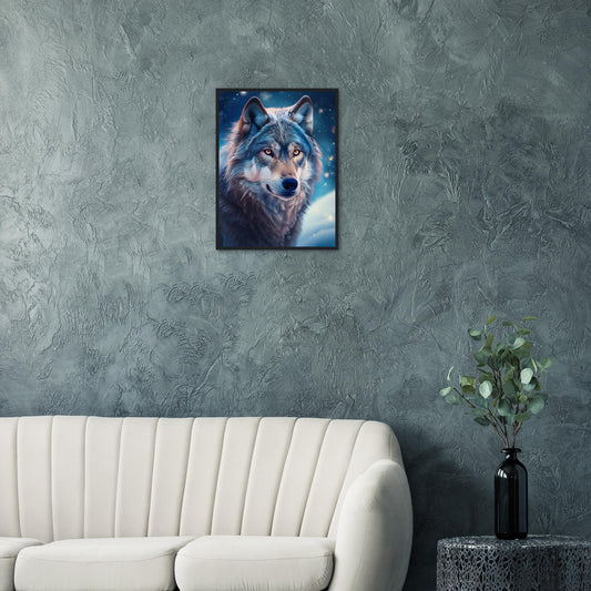 Mounted Framed Poster - Stunning Wolf Portrait in Snow - Premium Quality Decor