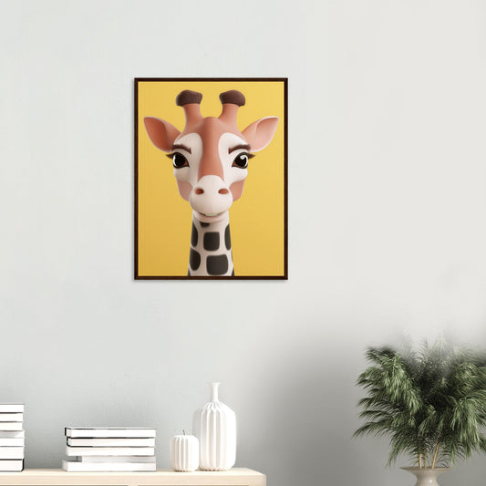Whimsical Giraffe Mounted Framed Poster – Colorful Illustration with Durable Pine Frame