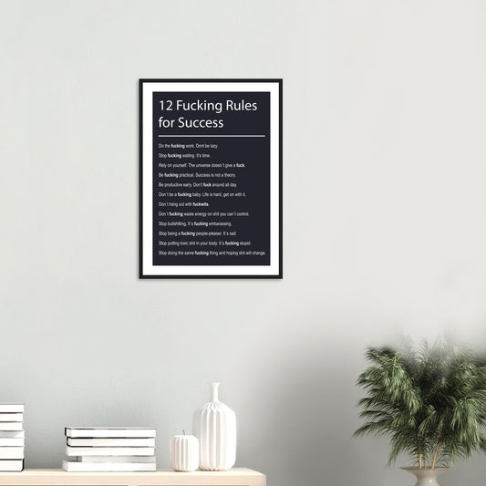 Motivational Mounted Framed Poster – 12 Rules for Success in Home & Office