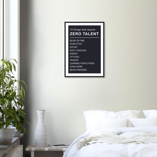 Zero Talent Motivational Mounted Framed Poster – Black & White Design for Home & Office