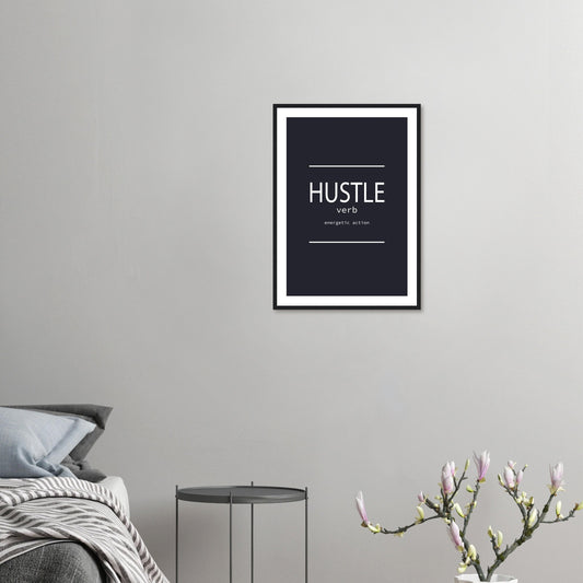 Hustle - Motivational Mounted Framed Poster - Elegant Black & White Design for Home or Work