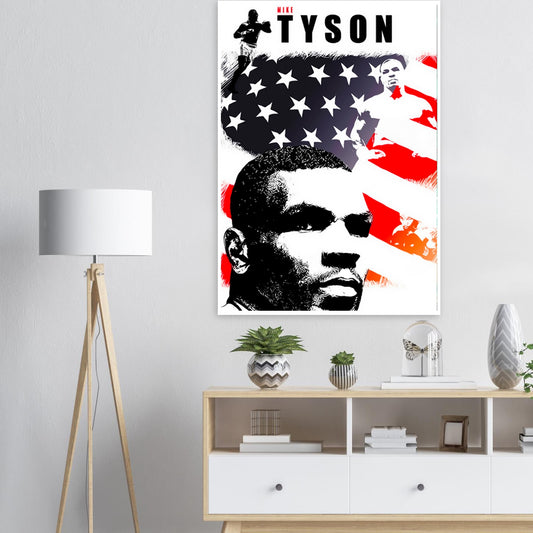 Mike Tyson Boxing Poster with American Flag – Premium Matte Finish