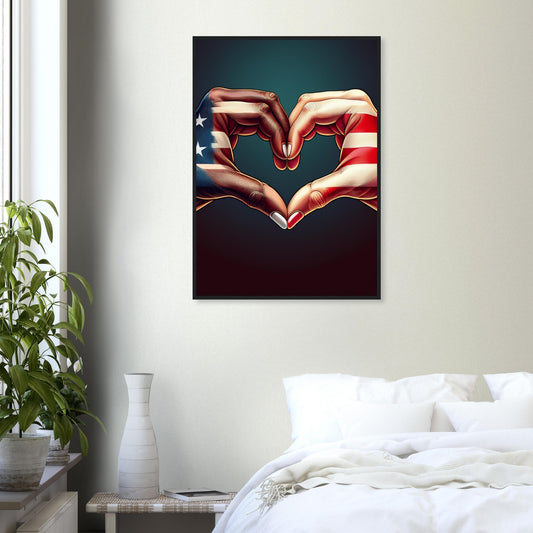 American Heart Hands Mounted Framed Poster – Patriotic Wall Art Decor