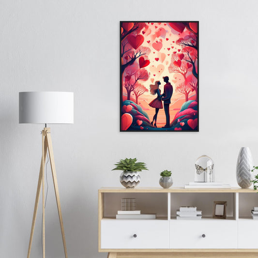 Romantic Valentine's Couple Mounted Framed Poster – Heart Forest Design