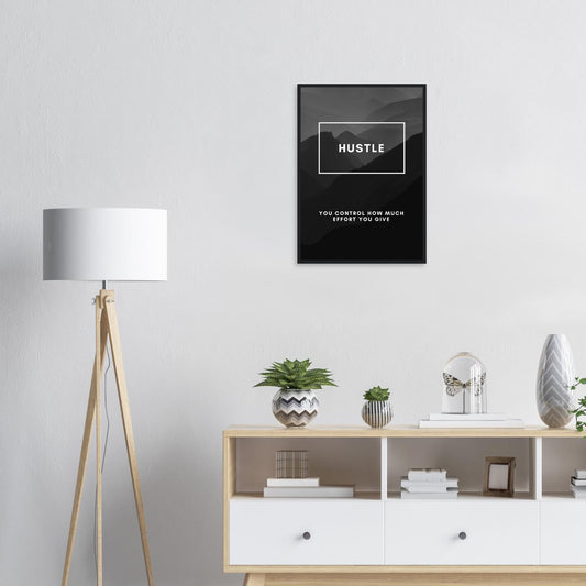 Póster enmarcado con motivación Hustle: arte mural empresarial en blanco y negro