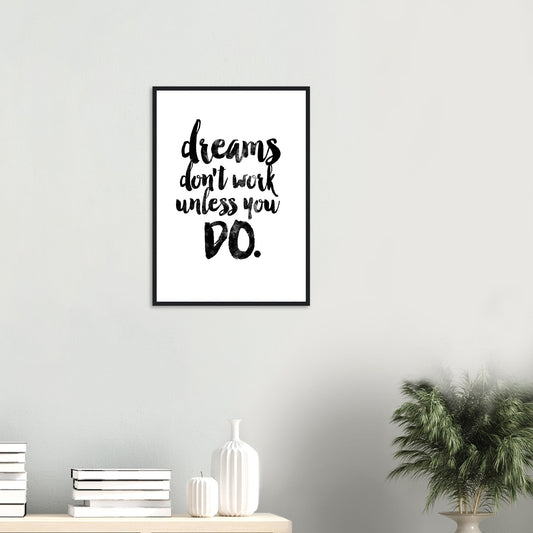 Póster motivacional enmarcado y montado: cita artística "Los sueños no funcionan"