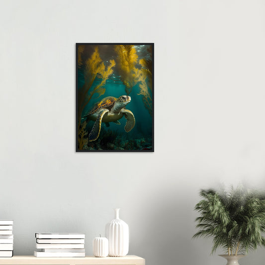 Póster enmarcado con una tortuga marina: un diseño espectacular en agua clara