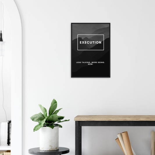 Póster empresarial motivacional en blanco y negro enmarcado y montado: Execution Design