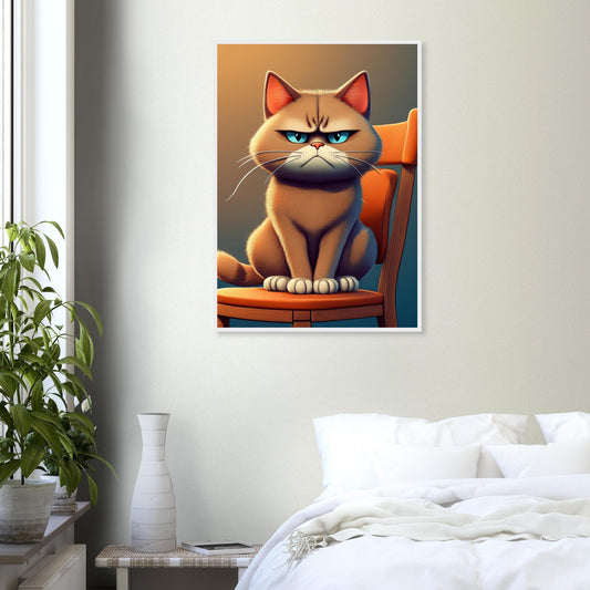 Póster enmarcado montado de Grumpy Cat: gato de dibujos animados sentado en una silla
