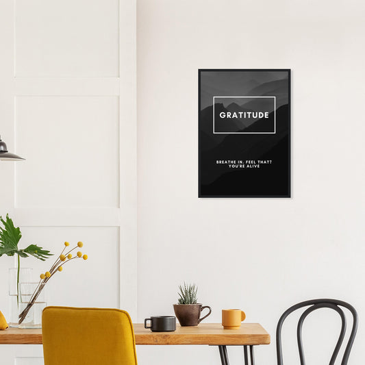 Póster empresarial motivacional de gratitud: diseño enmarcado en blanco y negro