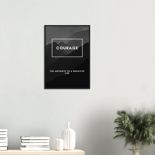 Póster empresarial motivacional sobre el coraje: arte enmarcado en blanco y negro