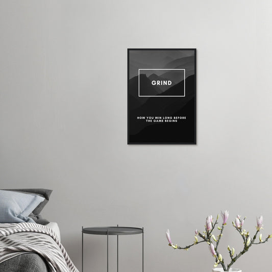 Póster empresarial motivacional en blanco y negro Grind: arte enmarcado montado