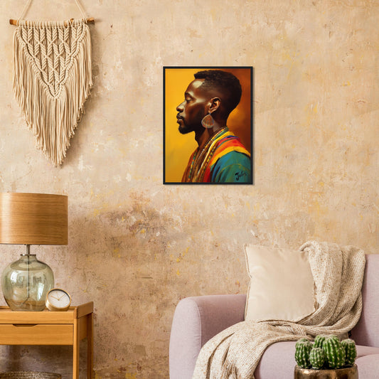 Impresión enmarcada montada: impresionante retrato de perfil de un hombre africano negro con túnicas tradicionales