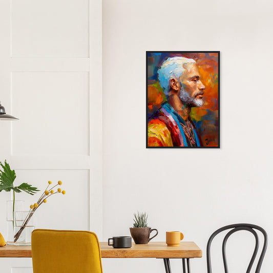 Impresión enmarcada vibrante: retrato de hombre latino con cabello y barba grises