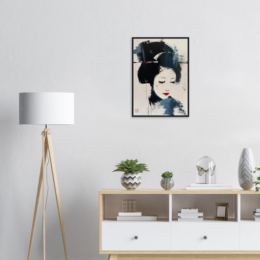 Impresión enmarcada elegante de una geisha: retrato artístico tradicional en un marco de pino duradero