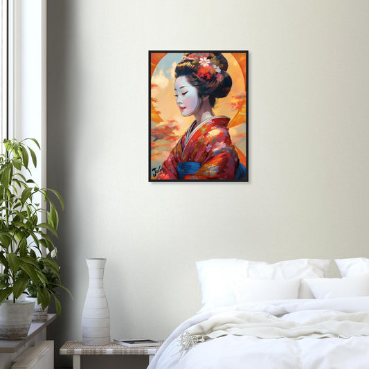 Póster enmarcado de Geisha de belleza oriental: impresionante impresión artística en estilo tradicional