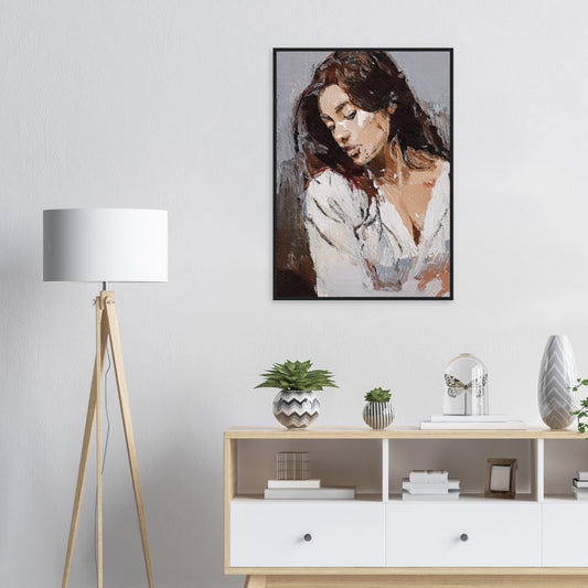 Póster enmarcado con retrato de una dama latina: impresión artística latina colorida