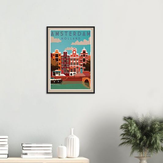Póster de arte retro de Ámsterdam: decoración de pared enmarcada