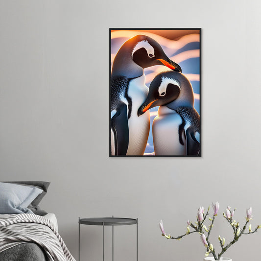 Magnifique affiche encadrée de pingouins colorés se lissant les plumes – Art mural élégant