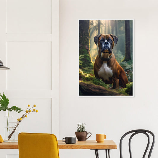 Affiche encadrée de chien Boxer – Impression d'art de chien fier dans les bois